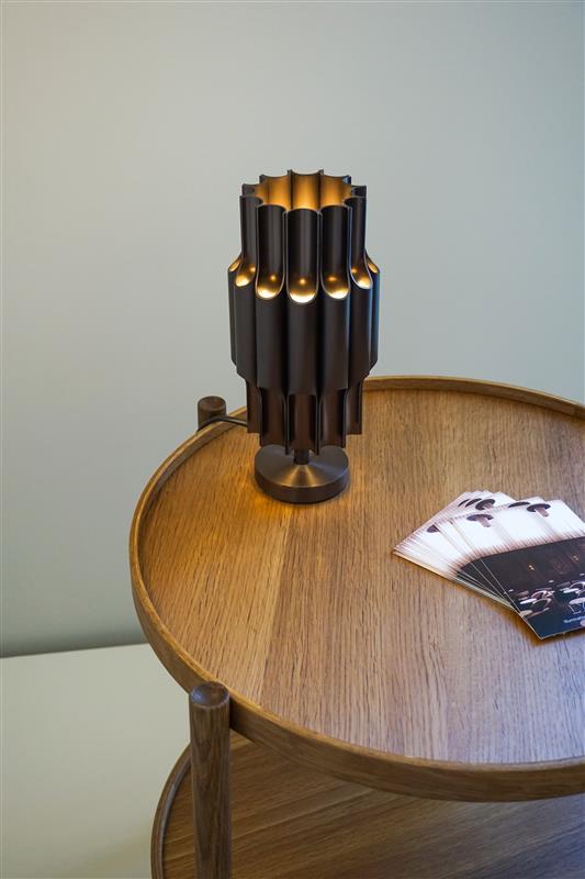Zur Hälfte Licht und zur Hälfte Kunst, ist PAN zu jeder Tageszeit ein visueller Hingucker. Während die Tischlampe ihre glänzenden Oberflächen elegant durch ihre offenen Rohre beleuchtet, bietet sie angenehmes nach unten gerichtetes Licht und dezente Umgebungsbeleuchtung durch ihre offene Oberseite.