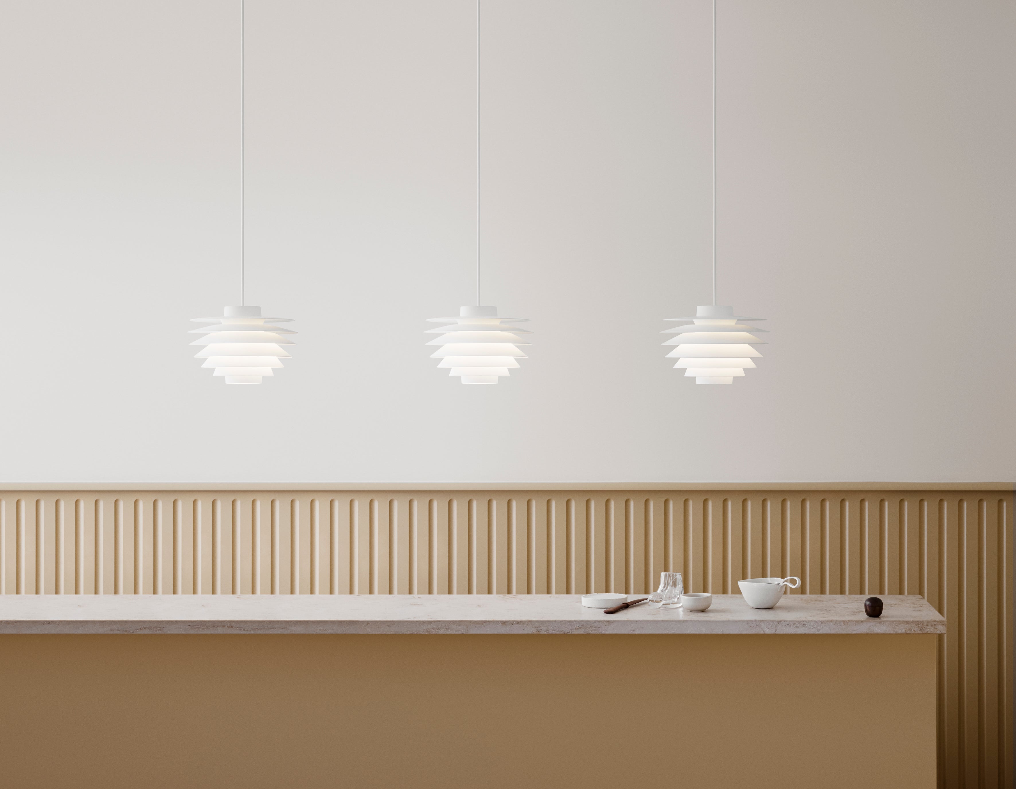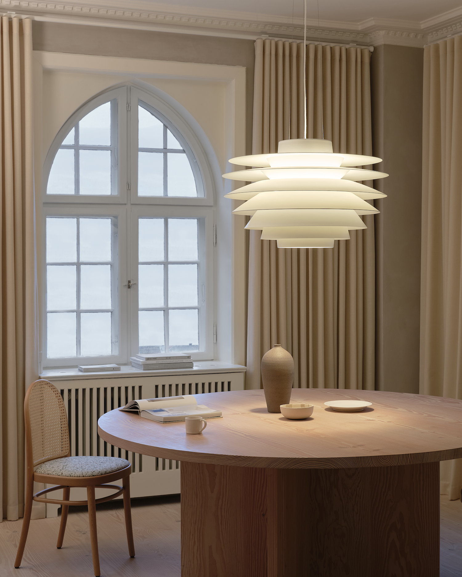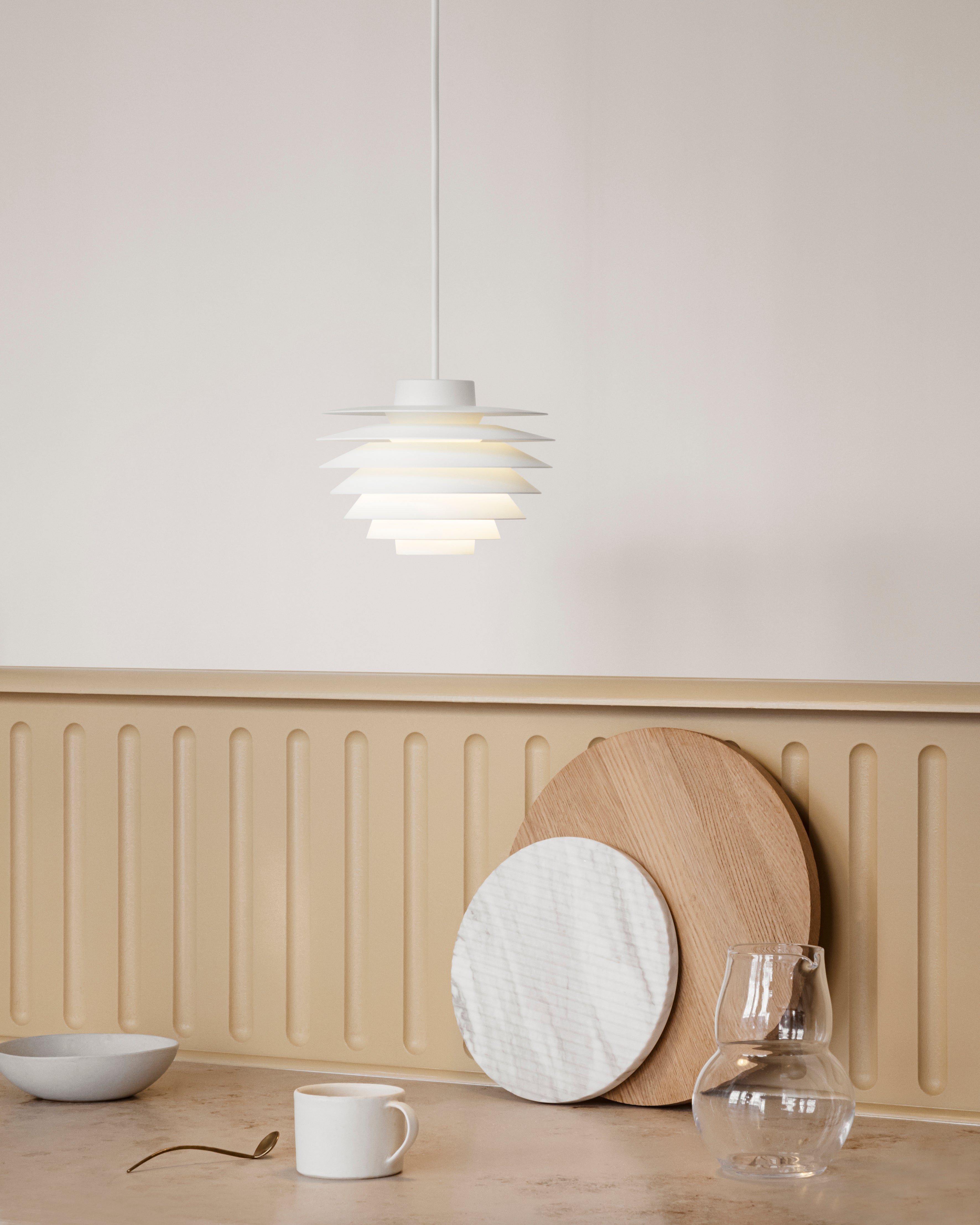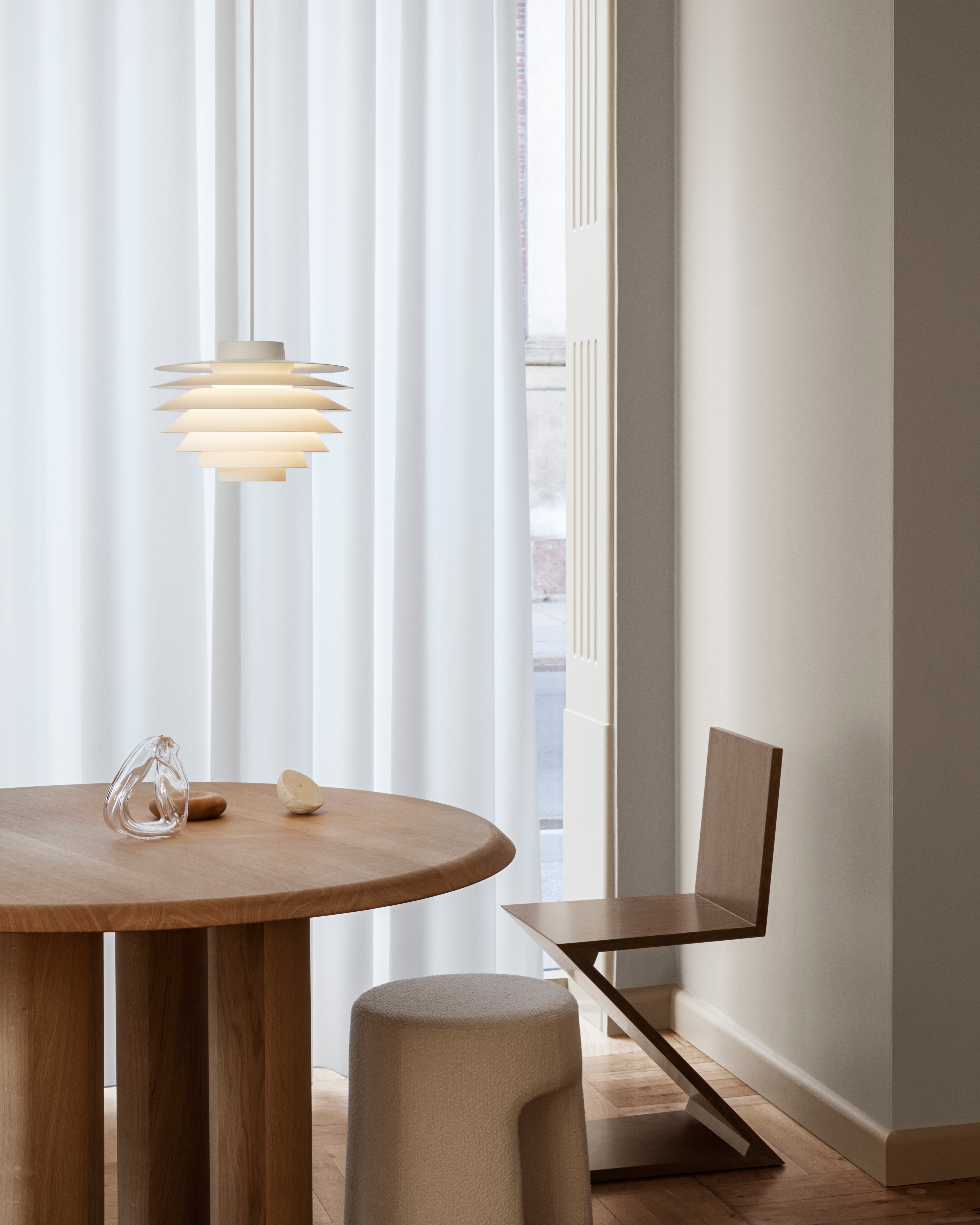 VERONA is a prime example of functionalist design philosophy, in which form follows function. The need for glare-free lighting is achieved by bending and shaping the light around the ring shades. Sven Middelboe managed to design the shades so there are no visible suspensions between the shades - making them almost floating in air. The pendant provides soft and functional illumination that’s easy on the eyes, while elegantly keeping the light source obscured from view. All the while, the lamp itself lights up, becoming a timeless design piece in the room.