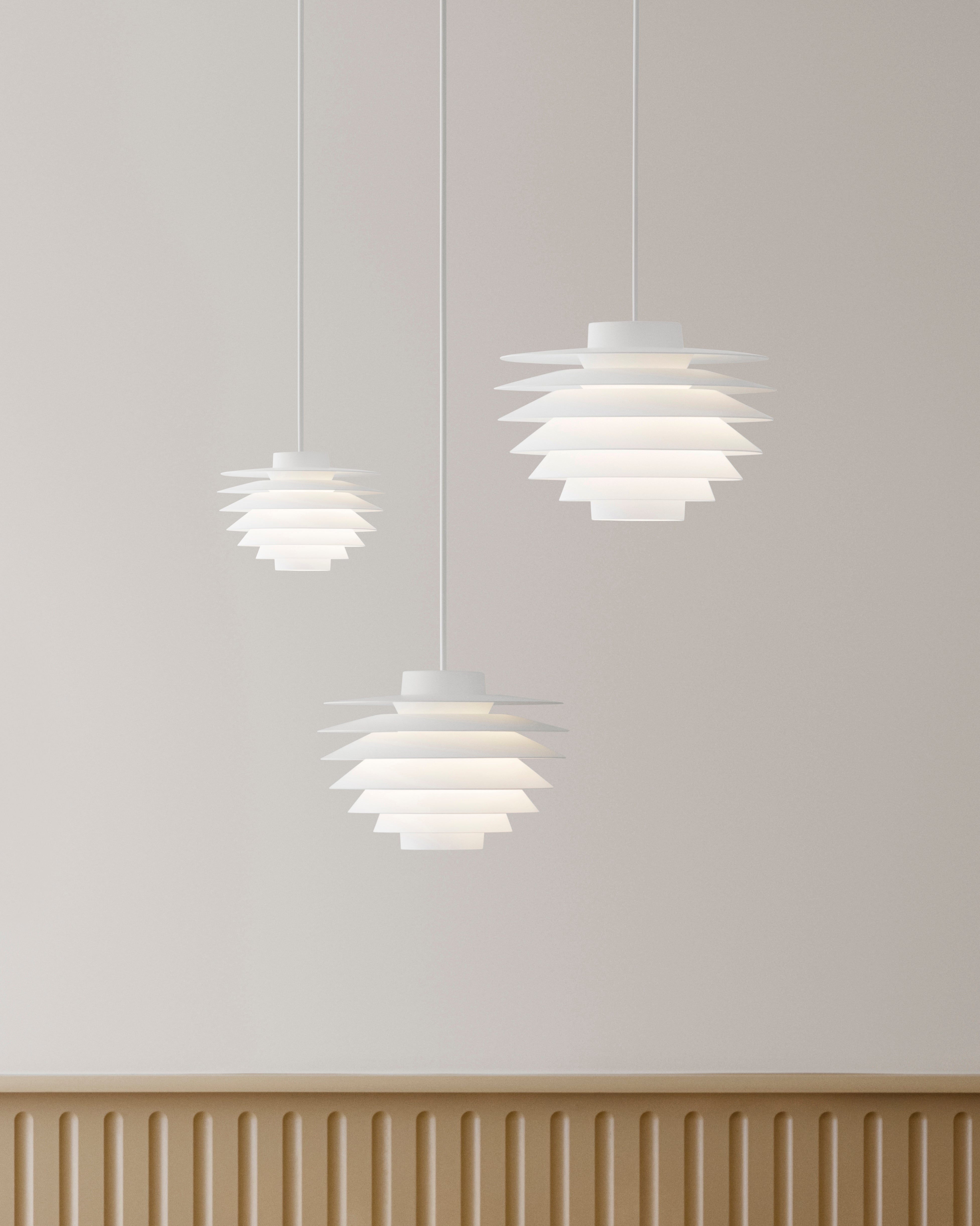 Throughout his career, Sven Middelboe continued to experiment with various shade constructions and combinations, which resulted in the Verona pendant that was introduced in 1968. The series quickly became popular and today, Verona is regarded as one of the most iconic pendants in Sven Middelboe’s wide range of lighting designs.