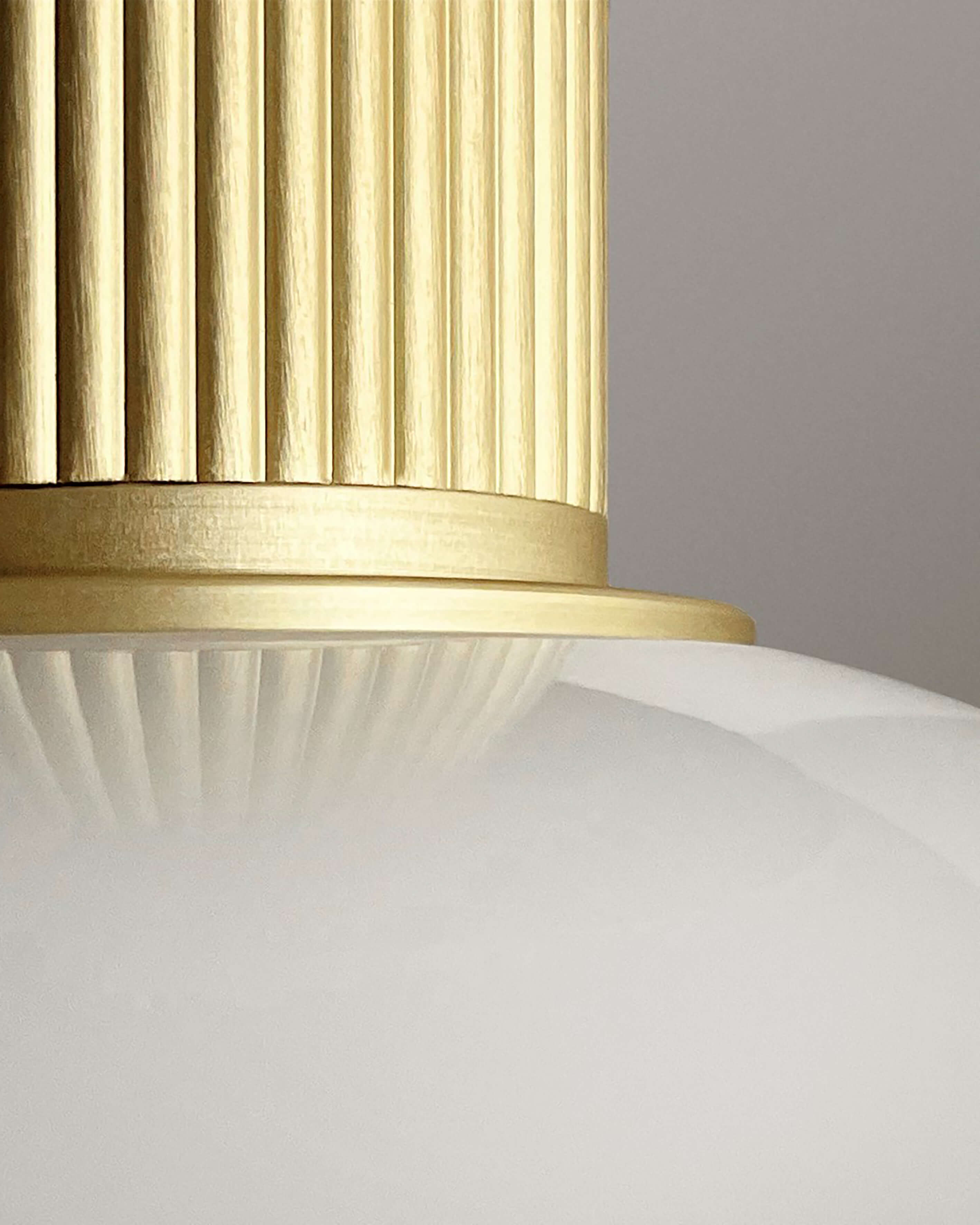 MEMOIR is a series that covers both pendants, wall, and ceiling lamps. With the opal glass shade as the consistent element, the series comes in a wide range of configurations available in two different finishes – satin brass and matt black. The connector arm is designed to avoid any type of welding thanks to technical and modular detailing, which allows it to be connected in every model of the collection and in numerous compositions.