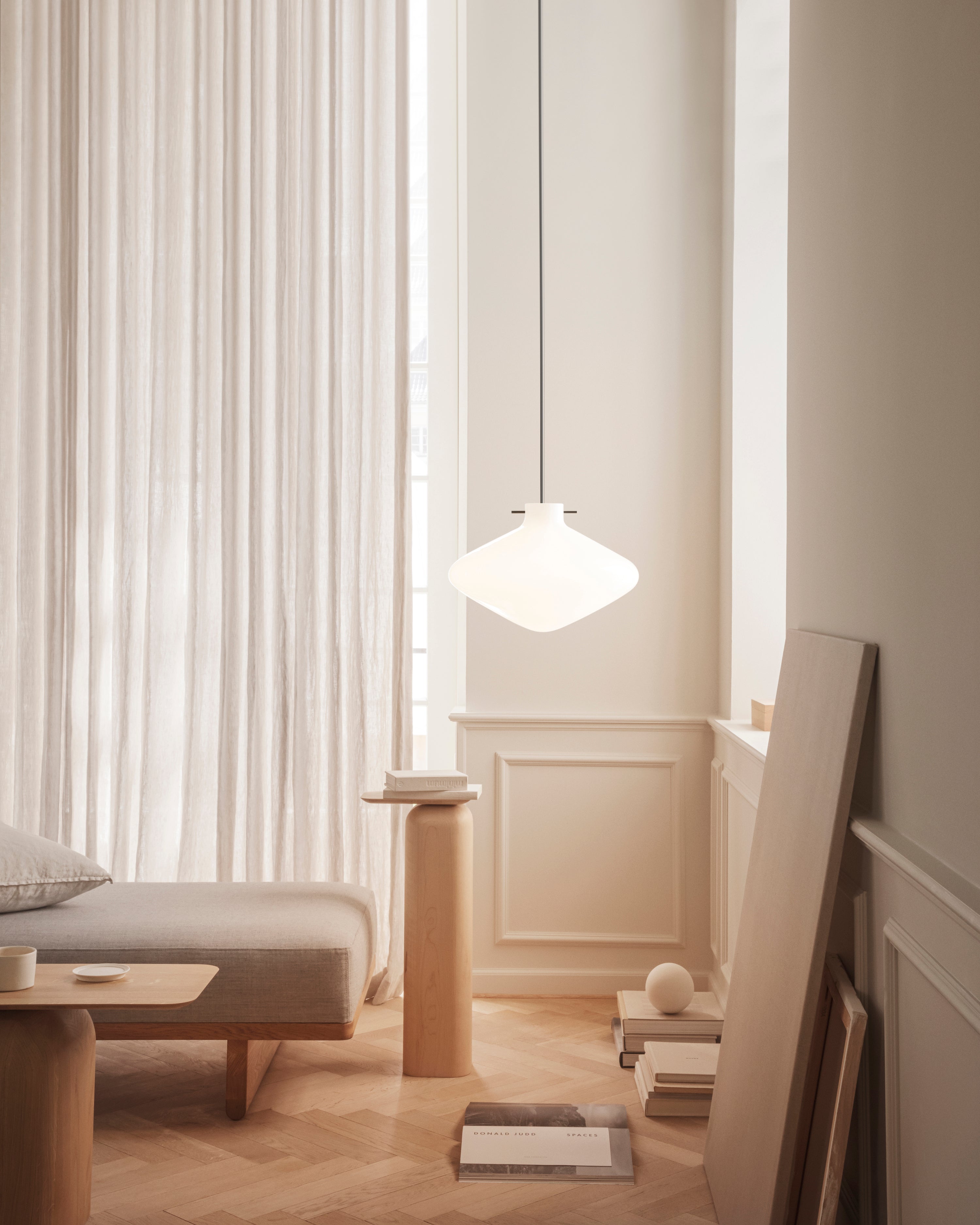REPOSE is a new series of opal glass lamps epitomized by GamFratesi’s passion for craftsmanship, contrasts and refined aesthetic. Its strong sense of character is achieved by the poetic balance point of the thin line crossing the top of the organic shades. Designed to provide a calm atmosphere with its diffused light, graphic expression and soft shapes.